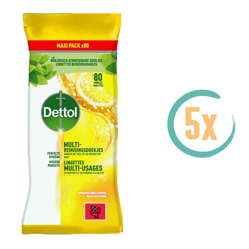 5x Dettol Multi Reinigingsdoekjes Citroen 80 stuks