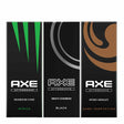 Bij bestelling ontvangt u 1x Axe Aftershave Africa, 1x Axe Aftershave Dark Temptation en 1x Axe Aftershave Black van 100ml per stuk.